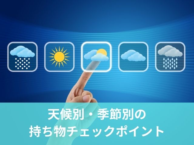「暑さ・寒さ・雨」すべてを想定した持ち物準備が、快適さのカギです。